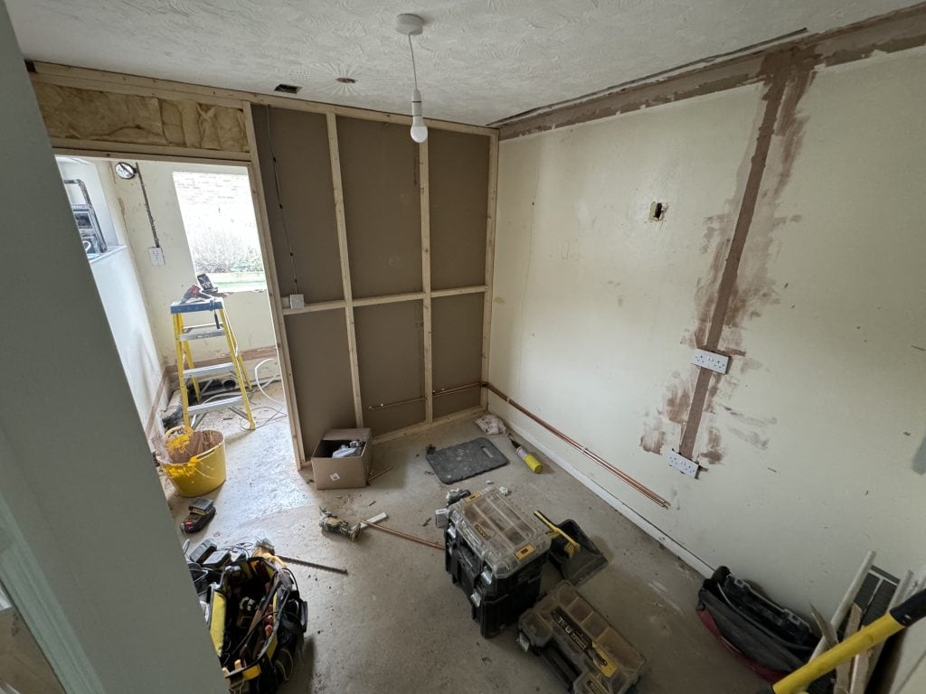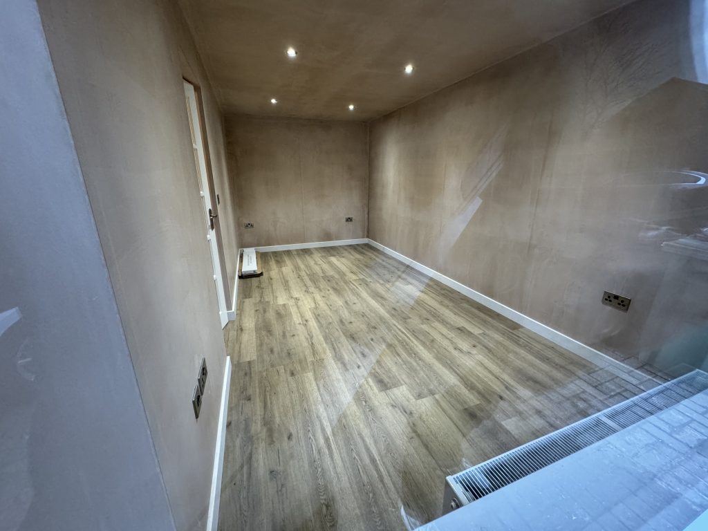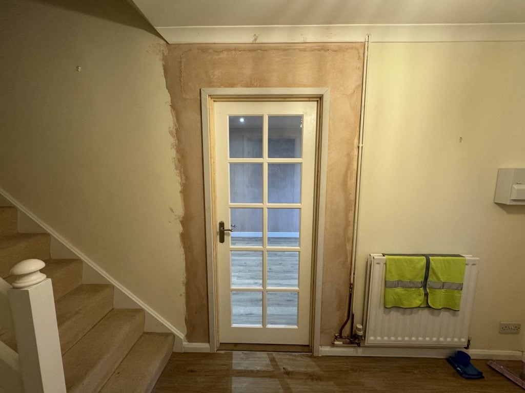This project began with a full garage conversion into a bright, welcoming dining room. Just a month later, the existing dining room was transformed into a practical utility room and downstairs bathroom, designed with the needs of the elderly homeowner in mind.