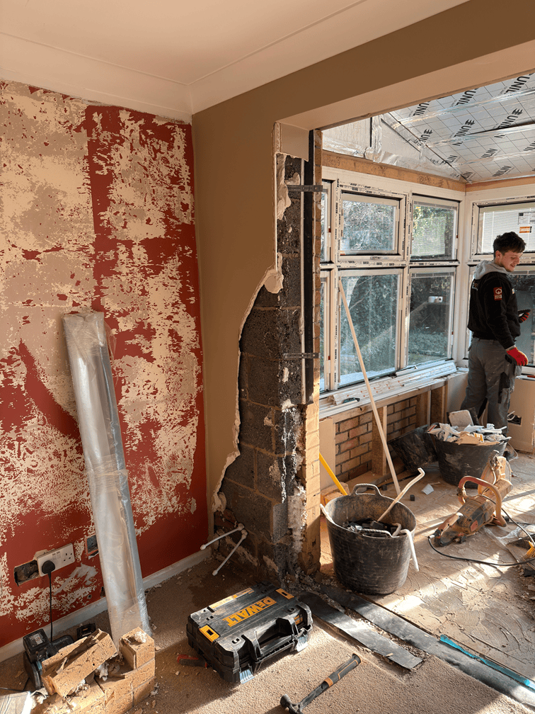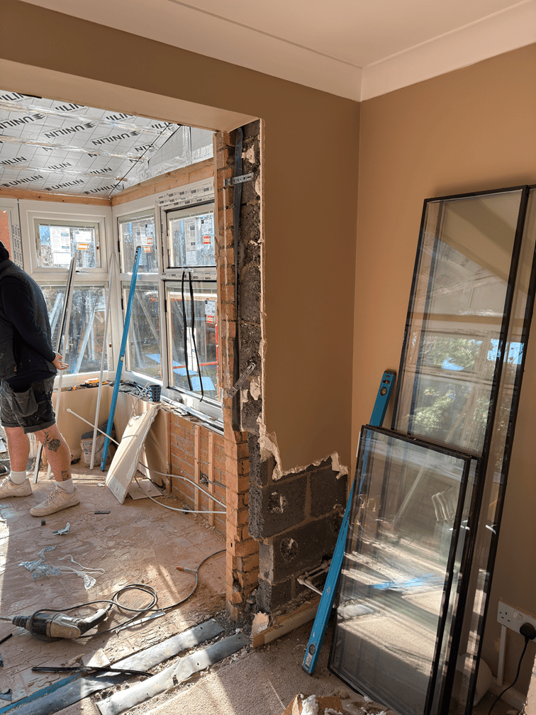 This project focused on upgrading the conservatory to create a more usable living space. A new warm roof and frames were installed, along with bifold doors to improve access and bring in more light. The existing roof was extended back to the house, with structural changes made internally to open up the space and create a seamless finish.